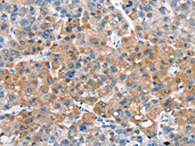 The image on the left is immunohistochemistry of paraffin-embedded Human liver cancer tissue using CSB-PA697830(LATS2 Antibody) at dilution 1/30, on the right is treated with synthetic peptide. (Original magnification: ×200)