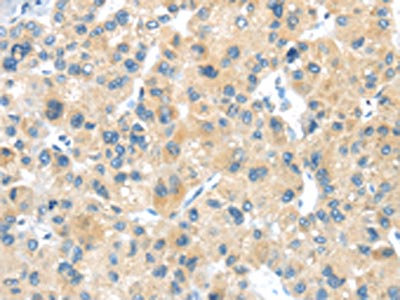 The image on the left is immunohistochemistry of paraffin-embedded Human liver cancer tissue using CSB-PA559394(LPAR1 Antibody) at dilution 1/20, on the right is treated with synthetic peptide. (Original magnification: ×200)