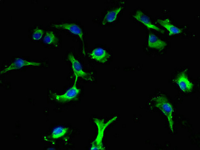Immunofluorescent analysis of U251 cells using CSB-PA013070LA01HU at dilution of 1:100 and Alexa Fluor 488-congugated AffiniPure Goat Anti-Rabbit IgG(H+L)