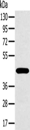 Gel: 8%SDS-PAGE, Lysate: 40 μg, Lane: A375 cells, Primary antibody: CSB-PA216191(MAGEA10 Antibody) at dilution 1/400, Secondary antibody: Goat anti rabbit IgG at 1/8000 dilution, Exposure time: 20 seconds