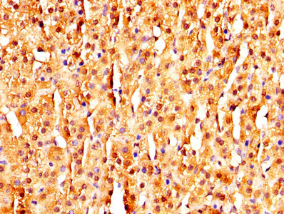 Lane 2: CSB-PA891976LA01HU (6µg) + HepG2 whole cell lysate (500µg)
