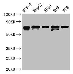 Positive WB detected in: MCF-7 whole cell lysate, HepG2 whole cell lysate, A549 whole cell lysate, 293 whole cell lysate, PC-3 whole cell lysate