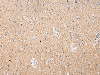The image on the left is immunohistochemistry of paraffin-embedded Human brain tissue using CSB-PA584071(MAP2 Antibody) at dilution 1/20, on the right is treated with fusion protein. (Original magnification: ×200)
