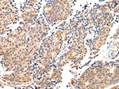 The image on the left is immunohistochemistry of paraffin-embedded Human prostate cancer tissue using CSB-PA584071(MAP2 Antibody) at dilution 1/20, on the right is treated with fusion protein. (Original magnification: ×200)