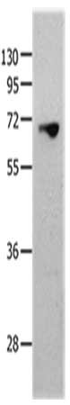 Gel: 10+12%SDS-PAGE, Lysate: 40 μg, Lane: 823 cells, Primary antibody: CSB-PA926432(MMP25 Antibody) at dilution 1/1300, Secondary antibody: Goat anti rabbit IgG at 1/8000 dilution, Exposure time: 2 minutes