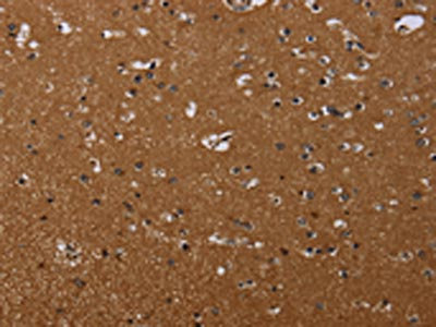 The image on the left is immunohistochemistry of paraffin-embedded Human brain tissue using CSB-PA240239(MOB1A Antibody) at dilution 1/20, on the right is treated with synthetic peptide. (Original magnification: ×200)