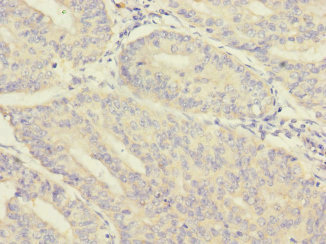 Immunohistochemistry of paraffin-embedded human endometrial cancer using CSB-PA736208LA01HU at dilution of 1:100