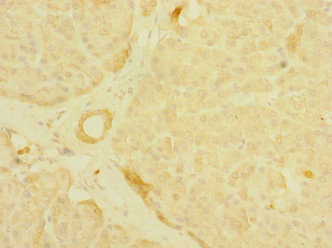 Immunohistochemistry of paraffin-embedded human pancreatic tissue using CSB-PA889164ESR2HU at dilution of 1:100