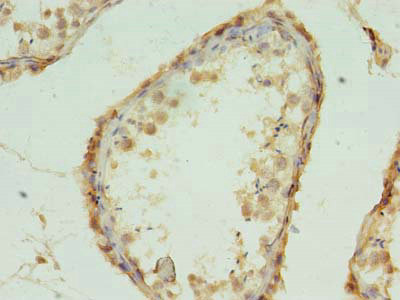 Immunohistochemistry of paraffin-embedded human testis tissue using CSB-PA861987LA01HU at dilution of 1:100