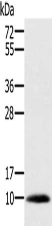 Gel: 10%SDS-PAGE, Lysate: 40 μg, Lane: Human prostate tissue, Primary antibody: CSB-PA164416(MSMB Antibody) at dilution 1/200, Secondary antibody: Goat anti rabbit IgG at 1/8000 dilution, Exposure time: 1 second