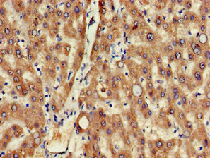 Immunohistochemistry of paraffin-embedded human liver tissue using CSB-PA882163LA01HU at dilution of 1:100