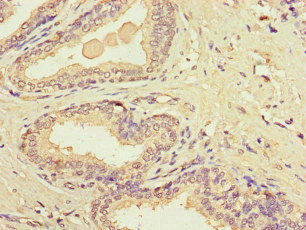 Immunohistochemistry of paraffin-embedded human prostate cancer using CSB-PA015072LA01HU at dilution of 1:100