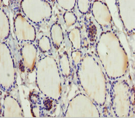 Immunohistochemistry of paraffin-embedded human thyroid tissue using CSB-PA892343DSR1HU at dilution of 1:100