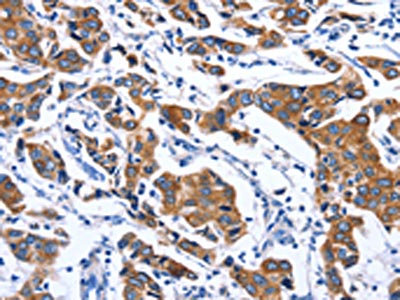 The image on the left is immunohistochemistry of paraffin-embedded Human breast cancer tissue using CSB-PA791340(MYH1 Antibody) at dilution 1/40, on the right is treated with fusion protein. (Original magnification: ×200)