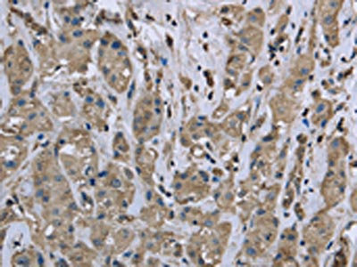 The image on the left is immunohistochemistry of paraffin-embedded Human prostate cancer tissue using CSB-PA595808(MYL12B Antibody) at dilution 1/25, on the right is treated with fusion protein. (Original magnification: ×200)