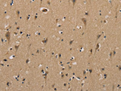 The image on the left is immunohistochemistry of paraffin-embedded Human brain tissue using CSB-PA274859(MYL3 Antibody) at dilution 1/40, on the right is treated with fusion protein. (Original magnification: ×200)