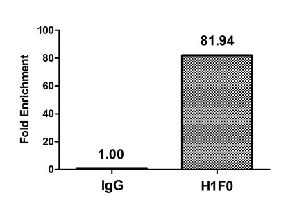 Chromatin Immunoprecipitation Hela (4*106) were treated with Micrococcal Nuclease, sonicated, and immunoprecipitated with 5µg anti-H1F0 (CSB-PA010087OA101me1HU) or a control normal rabbit IgG. The resulting ChIP DNA was quantified using real-time PCR with primers against the β-Globin promoter.