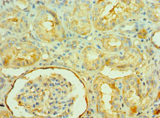Immunohistochemistry of paraffin-embedded human kidney tissue using CSB-PA015422ESR1HU at dilution of 1:100