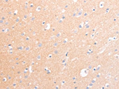 The image on the left is immunohistochemistry of paraffin-embedded Human brain tissue using CSB-PA300302(NCAM1 Antibody) at dilution 1/30, on the right is treated with synthetic peptide. (Original magnification: ×200)