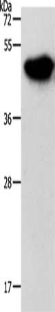 Gel: 12%SDS-PAGE, Lysate: 30 μg, Lane: Mouse brain tissue, Primary antibody: CSB-PA231152(NDRG3 Antibody) at dilution 1/1050, Secondary antibody: Goat anti rabbit IgG at 1/8000 dilution, Exposure time: 2 seconds