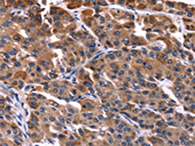 The image on the left is immunohistochemistry of paraffin-embedded Human liver cancer tissue using CSB-PA988942(NFATC3 Antibody) at dilution 1/50, on the right is treated with fusion protein. (Original magnification: ×200)