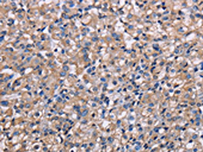 The image on the left is immunohistochemistry of paraffin-embedded Human liver cancer tissue using CSB-PA570196(NIT1 Antibody) at dilution 1/50, on the right is treated with fusion protein. (Original magnification: ×200)