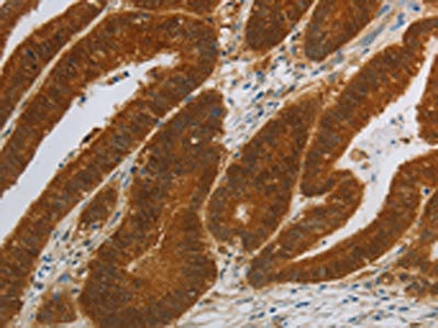 The image on the left is immunohistochemistry of paraffin-embedded Human colon cancer tissue using CSB-PA187627(NIT2 Antibody) at dilution 1/40, on the right is treated with synthetic peptide. (Original magnification: ×200)