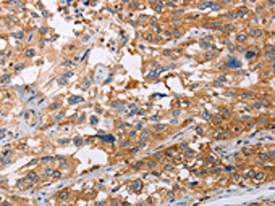 The image on the left is immunohistochemistry of paraffin-embedded Human esophagus cancer tissue using CSB-PA084492(NLRP3 Antibody) at dilution 1/15, on the right is treated with fusion protein. (Original magnification: ×200)