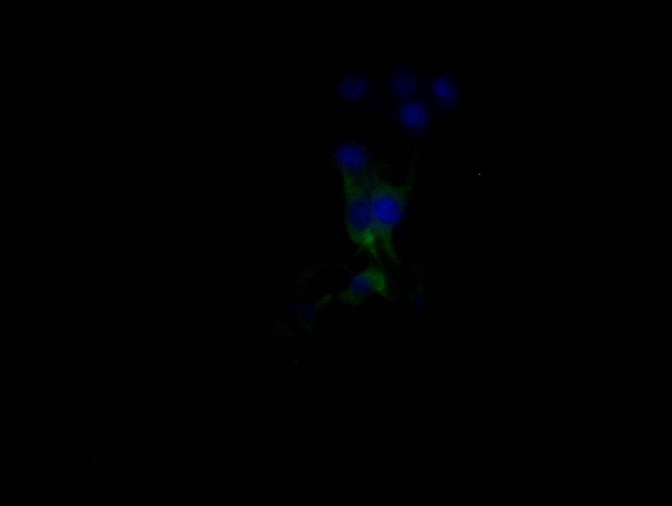 Immunofluorescent analysis of 3T3 cells using CSB-PA016133LA01HU at dilution of 1:100 and Alexa Fluor 488-congugated AffiniPure Goat Anti-Rabbit IgG(H+L)
