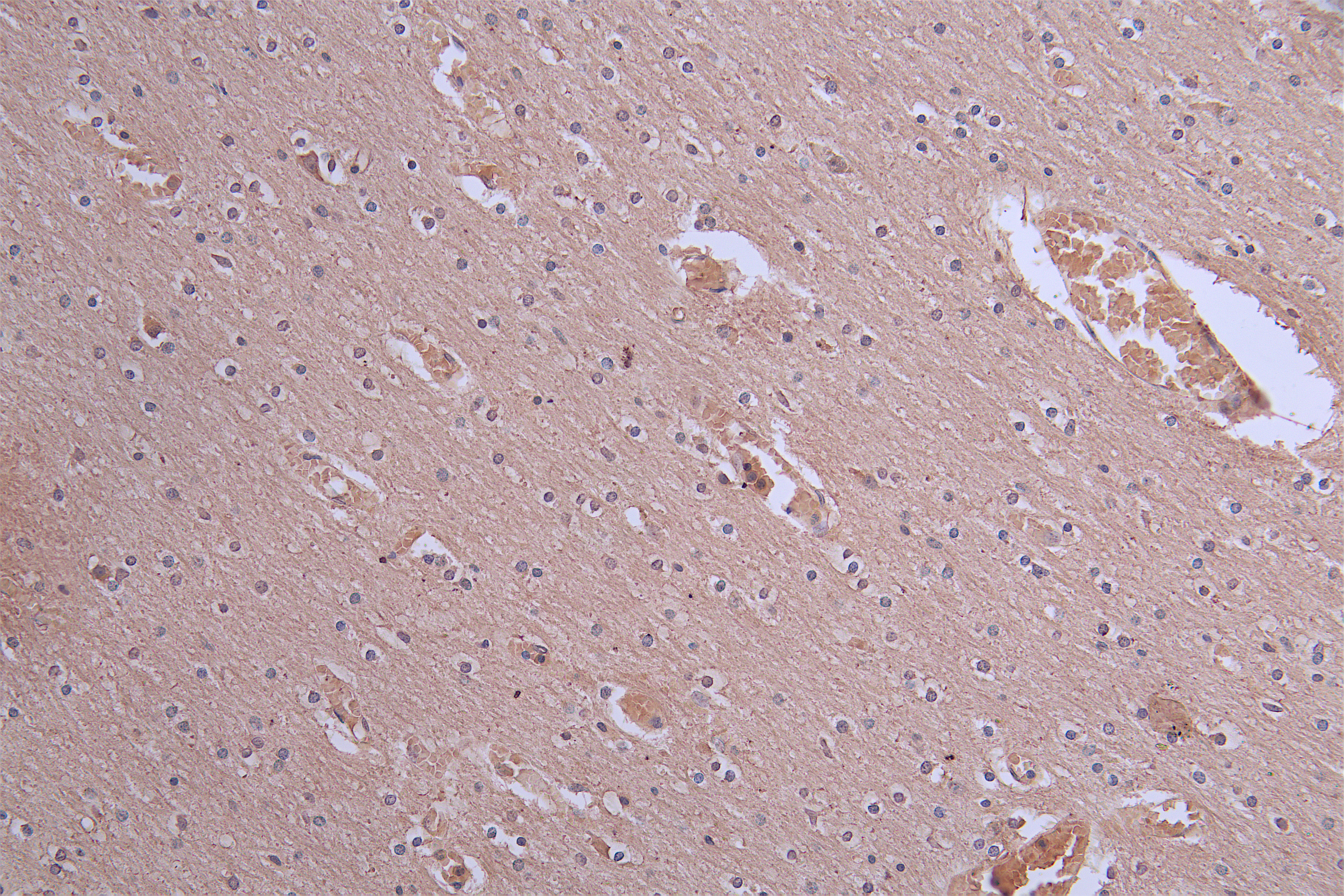 Immunohistochemistry of paraffin-embedded human brain tissue using CSB-PA016133LA01HU at dilution of 1:100
