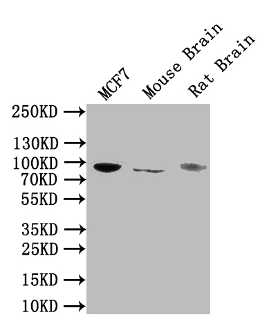 Positive WB detected in: MCF7 whole cell lysate, Mouse Brain tissue lysate, Rat Brain tissue lysate