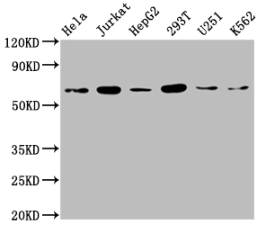 Positive WB detected in: Hela whole cell lysate, Jurkat whole cell lysate, HepG2 whole cell lysate, 293T whole cell lysate, U251 whole cell lysate, K562 whole cell lysate