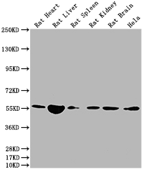 Positive WB detected in: Rat Heart tissue, Rat Liver tissue, Rat Spleen tissue, Rat Kidney tissue, Rat Brain tissue, Hela whole cell lysate