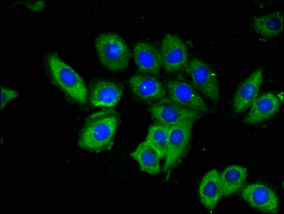 Immunofluorescent analysis of A549 cells using CSB-PA897591LA01HU at dilution of 1:100 and Alexa Fluor 488-congugated AffiniPure Goat Anti-Rabbit IgG(H+L)