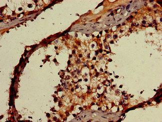Immunohistochemistry of paraffin-embedded human testis tissue using CSB-PA897591LA01HU at dilution of 1:100