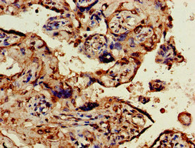 Immunohistochemistry of paraffin-embedded human placenta tissue using CSB-PA016254LA01HU at dilution of 1:100