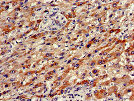 Immunohistochemistry of paraffin-embedded human liver cancer using CSB-PA858725LA01HU at dilution of 1:100