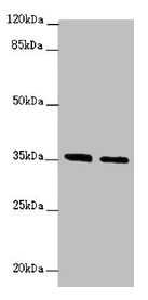 Observed band size: 36 kDa -