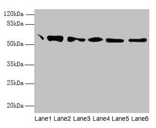 Predicted band size: 58 kDa