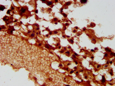 IHC image of CSB-PA017372LA01HU diluted at 1:400 and staining in paraffin-embedded human melanoma performed on a Leica BondTM system. After dewaxing and hydration, antigen retrieval was mediated by high pressure in a citrate buffer (pH 6.0). Section was blocked with 10% normal goat serum 30min at RT. Then primary antibody (1% BSA) was incubated at 4°C overnight. The primary is detected by a biotinylated secondary antibody and visualized using an HRP conjugated SP system.