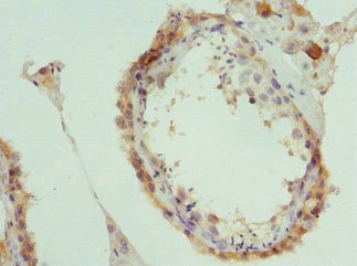 Immunohistochemistry of paraffin-embedded human testis tissue using CSB-PA017397ESR1HU at dilution of 1:100