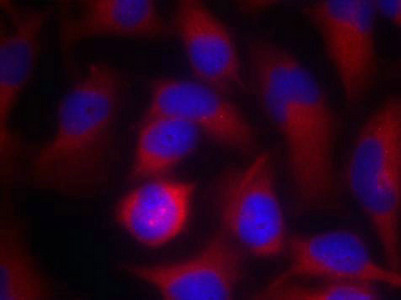 Immunofluorescence staining of methanol-fixed Hela cells using PAK1(Ab-212) Antibody.