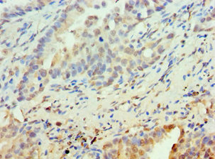 Immunohistochemistry of paraffin-embedded human lung cancer using CSB-PA017492DSR2HU at dilution of 1:100