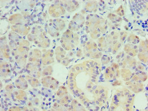 Immunohistochemistry of paraffin-embedded human pancreatic tissue using CSB-PA017492DSR2HU at dilution of 1:100
