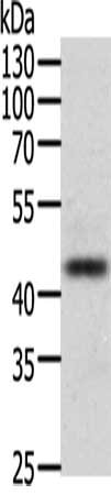 Gel: 10%SDS-PAGE, Lysate: 40 μg, Lane: A549 cells, Primary antibody: CSB-PA213924(PAX8 Antibody) at dilution 1/100, Secondary antibody: Goat anti rabbit IgG at 1/8000 dilution, Exposure time: 2 minutes