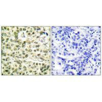 Immunohistochemical analysis of paraffin-embedded human breast carcinoma tissue using PCNA antibody.