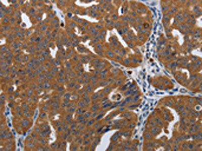 The image on the left is immunohistochemistry of paraffin-embedded Human ovarian cancer tissue using CSB-PA116985(PDCD2 Antibody) at dilution 1/10, on the right is treated with synthetic peptide. (Original magnification: ×200)