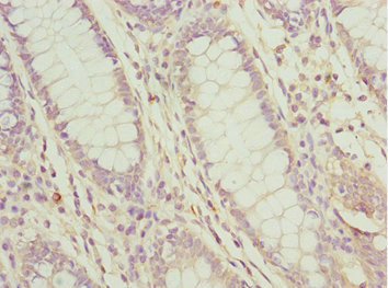 Immunohistochemistry of paraffin-embedded human colon cancer using CSB-PA871560ESR2HU at dilution of 1:100
