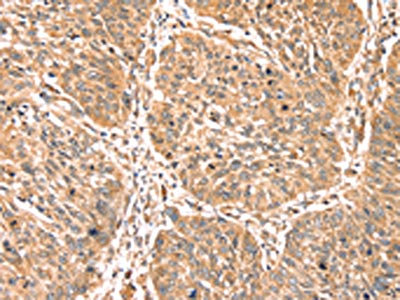 The image on the left is immunohistochemistry of paraffin-embedded Human lung cancer tissue using CSB-PA202328(PDLIM4 Antibody) at dilution 1/40, on the right is treated with fusion protein. (Original magnification: ×200)