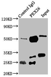 Immunoprecipitating PEX26 in K562 whole cell lysate